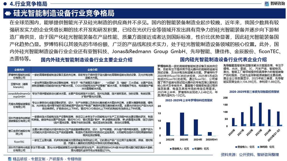 竞争情况:在人人范围内,大致提供智能光子及硅光制造的供应商并未几见。连年来,少数国内企业通过期间换取、研发、积聚,在重心规模形成时间冲破,舒服减轻了与外洋大型企业之间的差距,国际市集份额舒服进步。罗博特科以其跨越的市集份额、无为的居品线和时间实力,处于硅光智能制造建立规模的中枢位置。此外,国表里硅光智能制造建立行业企业还有亚智科技、先导智能、捷佳伟、金辰股份、ficonTEC、杰普罕见。